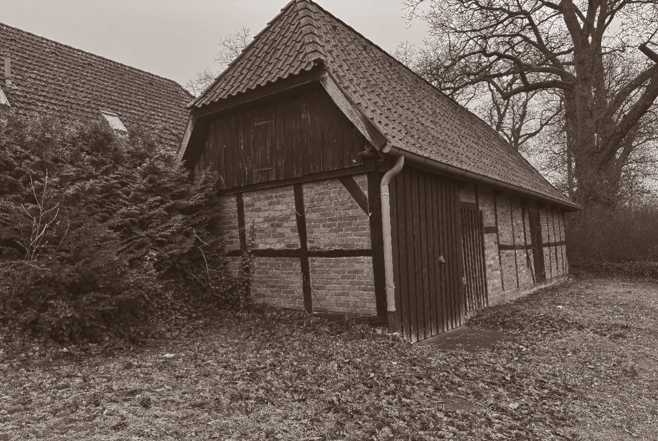 Die Giebelinschrift dieses ehemaligen Wohn- und Wirtschaftsgebäudes zeigt, dass es nach dem großen Dorfbrand von 1818 neu errichtet wurde. Das Gebäude gehörte einem sogenannten Brinksitzer, einem Kleinbauern, der aufgrund seiner Verpflichtungen gegenüber der Kirche als Pfarrkötner bekannt war. Der Pfarrkötner hatte feste Aufgaben für den Pfarrer: Er musste Korn und Gras mähen sowie Gräben und Zäune rund um die Pfarrgüter instand halten. Für diese Arbeiten erhielt er eine geringe Entlohnung – etwa 2 Reichstaler pro Jahr. Bereits 1611 wird ein Hinrich Ehlebeke als Pfarrkötner schriftlich erwähnt. Im Laufe der Jahrhunderte folgten weitere Familien mit den Namen Witthöft, Ävern und Beecken. Da Brinksitzer nur über wenig eigenes Land verfügten, waren sie oft auf einen Nebenerwerb angewiesen. Der letzte Besitzer des Hauses, Ernst Beecken, war neben der Landwirtschaft auch als Viehhändler tätig.Dieses Fachwerkhaus erzählt die Geschichte einer sozialen Schicht, die hart arbeitete und eng mit dem kirchlichen Leben verbunden war. Ein eindrucksvolles Zeugnis des ländlichen Alltags in vergangenen Zeiten!