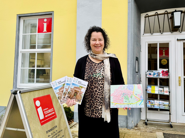 Mirja Engert, Leiterin der Tourist-Information Bad Nenndorf, mit dem aktualisierten Gastgeberverzeichnis für Bad Nenndorf und dem Stadtplan in A3