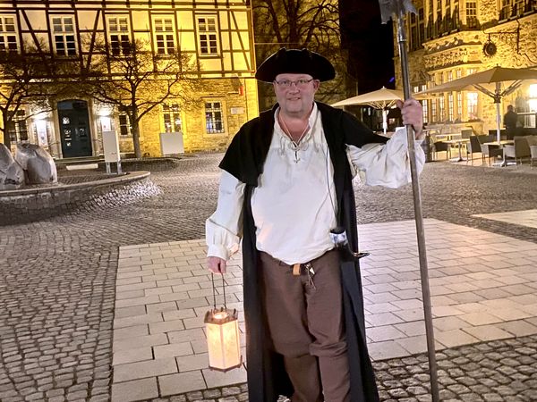 Ein weiteres Highlight: Das detailgetreue Gewand, das Peter Weiner speziell für seine Rolle anfertigen ließ. „Ich wollte möglichst nah an der historischen Realität bleiben“, erklärt er. „Die Laterne zum Beispiel ist mit Tierhaut bespannt – denn echtes Glas war damals noch sehr teuer“. Auch das traditionelle Blashorn wird stilecht eingesetzt – ein echter Hingucker (und Hinhörer) während des Rundgangs.
